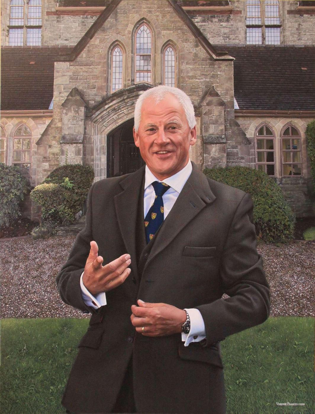 Mr. David Derbyshire Headmaster of Denstone College, 1997-2018 Oils on canvas, 107 cms by 81.5 cms, 2018
