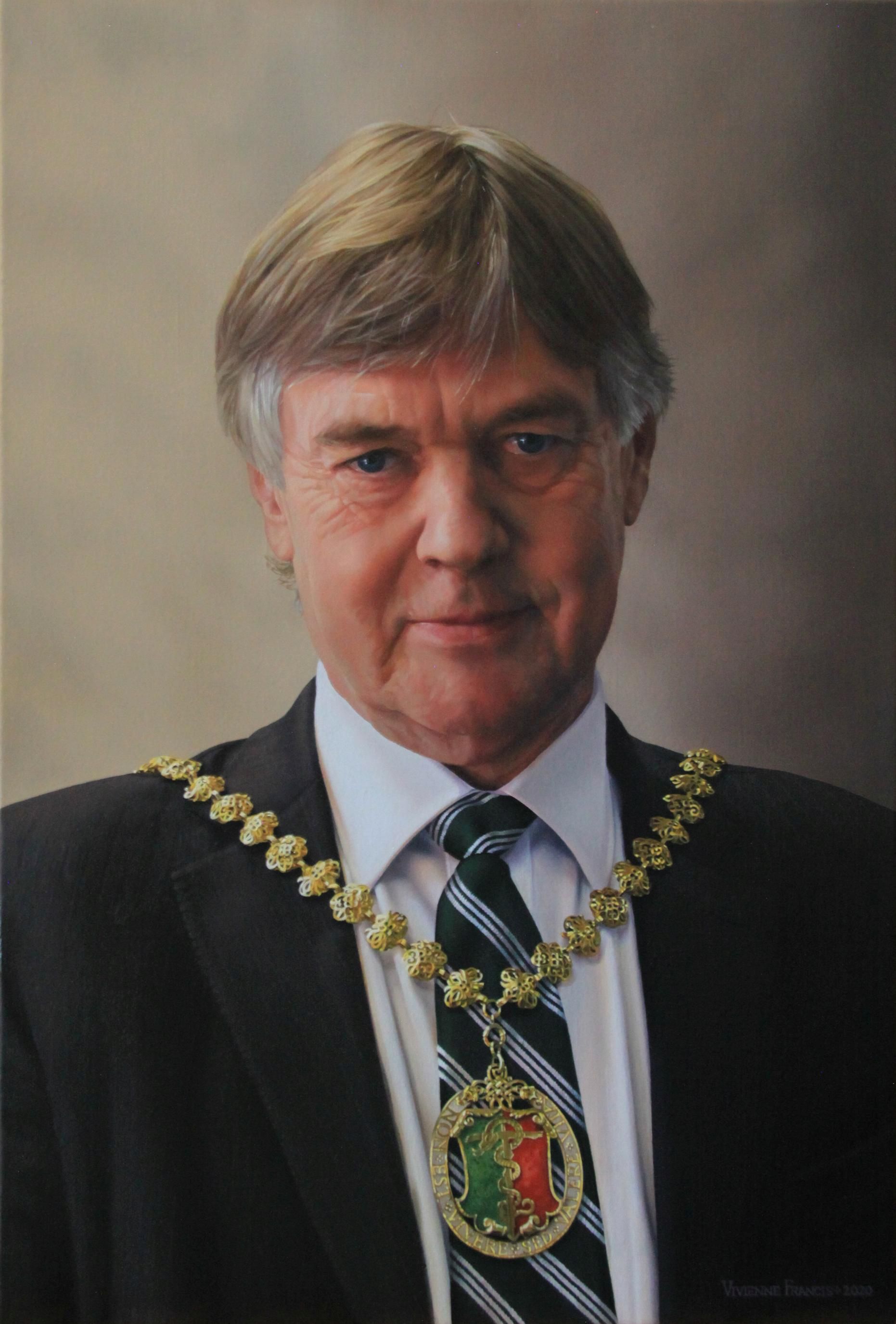 Mr. Michael Burdon President of the Royal College of Ophthalmologists, 2017-2020 Oils on canvas, 72 cms by 58 cms, 2019