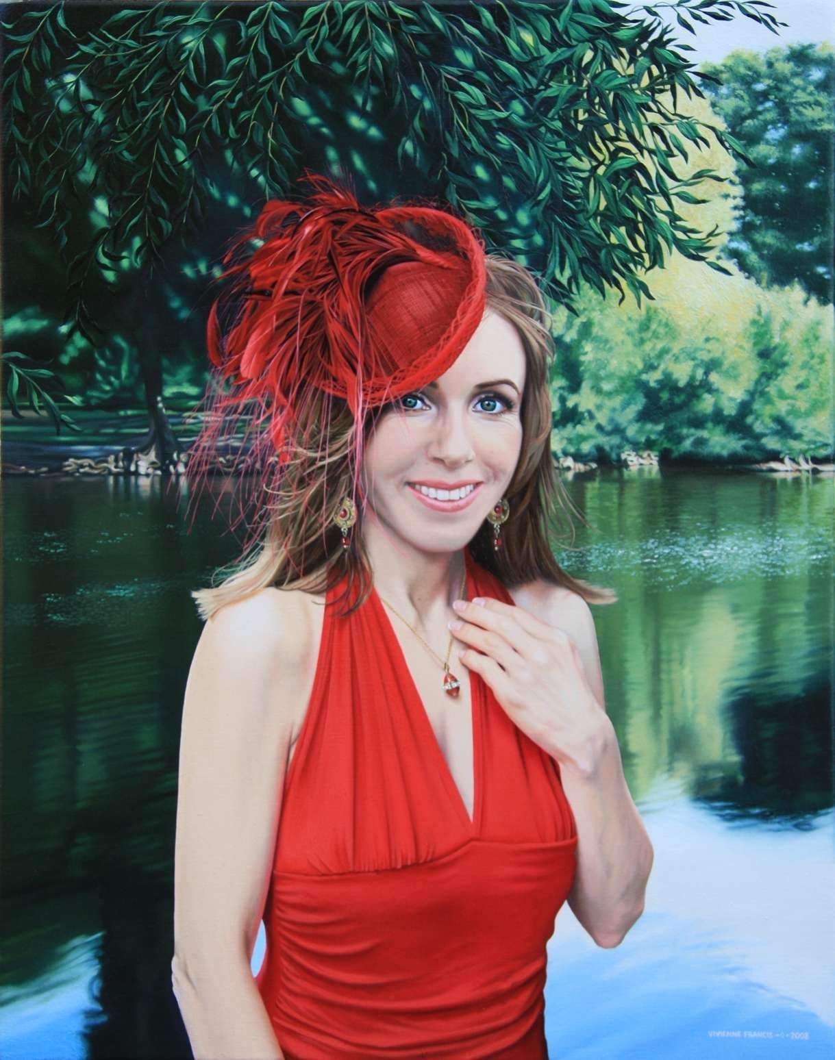Self-portrait in red. Oils on canvas, 71 cms by 56 cms, 2008